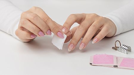 Gently buff and cleanse the natural nail with a gelmoment nail file and cleanser to remove any oils or residue and allow it to dry completely.